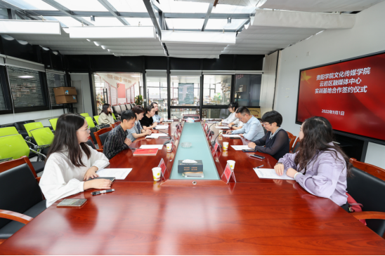2022年9月1日上午,必赢手机登录网址副院长王刚,党委副书记张颖,传播理论教研室主任王蕾,教师林雨馨、周婷婷前往云岩区融媒体中心进行实践教学基地签约授牌。云岩区区委常委、宣传部部长况怡兰,云岩区委宣传部副部长周文佳,云岩区融媒体中心主任钟关勇,副主任万钰、程小畅出席此次签约授牌仪式。