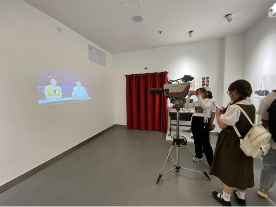 目光跟随马老师的脚步移到通往二楼的楼道,同学们了解到1949年12月1日《新黔日报》报眼【贵阳人民广播电台开播公告】是贵州广播电视台建台开播的最早见证,1951年4月5日更名为贵州人民广播电台。