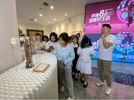 马闻好先向大家介绍了贵州广播电视台的历史及获得的各项荣誉。“中国新闻奖” “全国三八红旗集体”“全国先进基层党组织”等一座座奖杯吸引了同学们的目光。